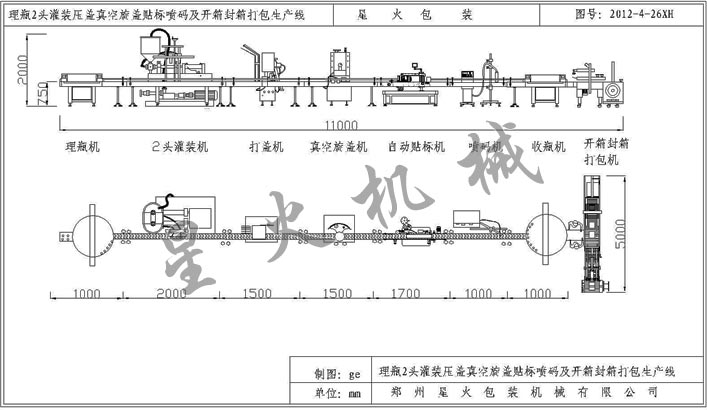 --理瓶2頭灌裝壓蓋真空旋蓋貼標(biāo)噴碼及開箱封箱打包生產(chǎn)線--